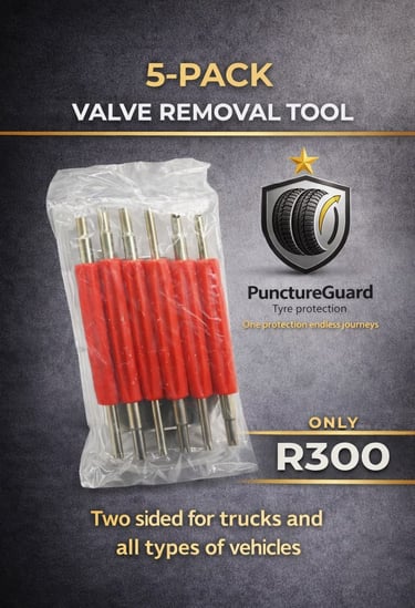 The Punctureguard Valve Core Removal Tool Set is a professional tool used to safely remove and reinstall tyre valve cores during sealant installation and tyre maintenance.
