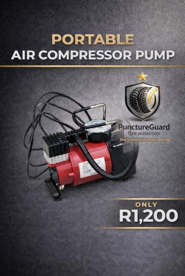 The Punctureguard Portable Air Compressor is a compact and powerful tool designed to quickly inflate tyres wherever you are. It is perfect for installers, mobile tyre services, and everyday drivers who need a reliable inflation solution.